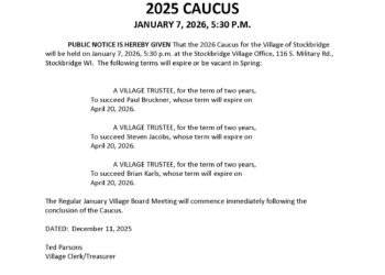 VILLAGE OF STOCKBRIDGE NOTICE OF PUBLIC BUDGET HEARING and ADOPTION THURSDAY, NOVEMBER 13, 2025 – 6:00 p.m. VILLAGE OFFICE –… Read More